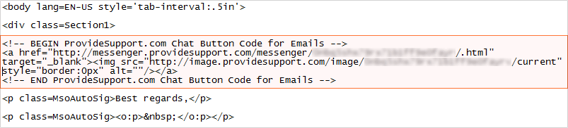 Les instructions pour ajouter le bouton de chat à la signature de vos e-mails dans Microsoft Outlook est presque la même pour les versions 2007 et ultérieures d'Outlook. Veuillez suivre les instructions suivantes si vous voulez ajouter le bouton de chat à vos signatures d'e-mails HTML.